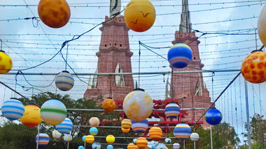 十月的广州市白云山上,一树树娇艳的粉红异木棉藏在满山的绿意中