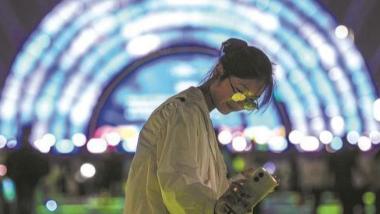 日前,重庆市黔江区的迎春灯饰投用,夜幕下迎春灯饰流光溢彩,营造出欢乐、祥和、喜庆的节日氛围,吸引了众多市民前往观赏。杨敏 摄