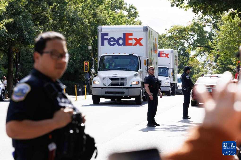 10月15日,在美国首都华盛顿 ,运送大熊猫的卡车即将驶入华盛顿国家动物园。当日,大熊猫“宝力”和“青宝”抵达美国华盛顿国家动物园,开启为期10年的旅居生活。