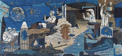 “大国重器”亮点纷呈,脱贫攻坚成就举世瞩目,这些时代新象都在展览中得到体现。例如,张辉君油画《蛟龙入海》、沙永汇版画《北斗》等作品,折射出我国科技自主创新能力不断提升。孔紫中国画《戈壁滩》和刘云中国画《美丽乡村》,分别借助植树造林的人物群像塑造、新农村景观的宏阔描绘,展现了彪炳史册的人间奇迹。