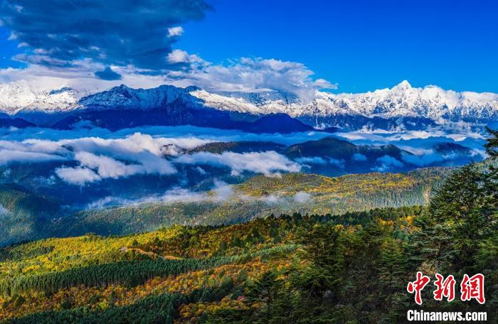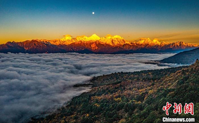 眼下,位于四川雅安市石棉县的王岗坪景区秋意正浓,林间“红黄绿紫”色彩丰富,与贡嘎群峰遥相辉映,大气磅礴;金山、云海、圆月、佛光和多彩的林海,这一切构成了王岗坪独有的秋色,美不胜收。