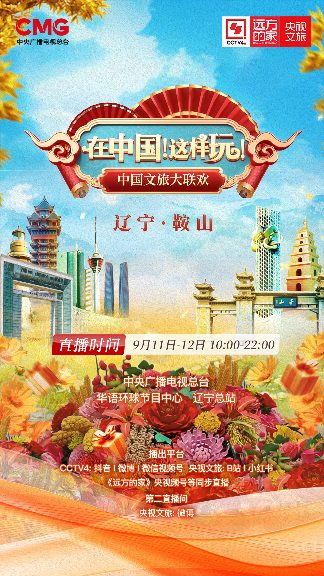 家国同庆、欢乐金秋!9月11日至12日,由中央广播电视总台华语环球节目中心、总台辽宁总站、辽宁省鞍山市共同打造的大型文旅主题直播活动——中国文旅大联欢《在中国!这样玩!》(金秋篇)正式开启。来自全国15个省、自治区的近30个城市的宣传及文旅部门负责人、行业专家、旅游达人齐聚直播间,为广大网友提供更丰富实用的旅游资讯和目的地选择。