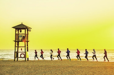 日照遇见跑团在海边晨跑