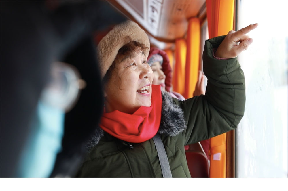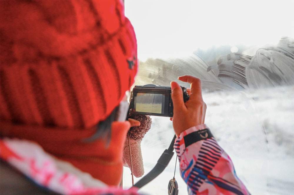 刚一坐上特色观光车,来自呼和浩特市8岁的张亦扬小朋友就按捺不住激动的心情,高兴地呼喊着“我要去见黄羊喽!”窗外银装素裹的童话世界,让游客们惊奇不已,张亦扬更是瞪大了双眼,期待第一时间“捕捉”到黄羊呆萌可爱的身影。
