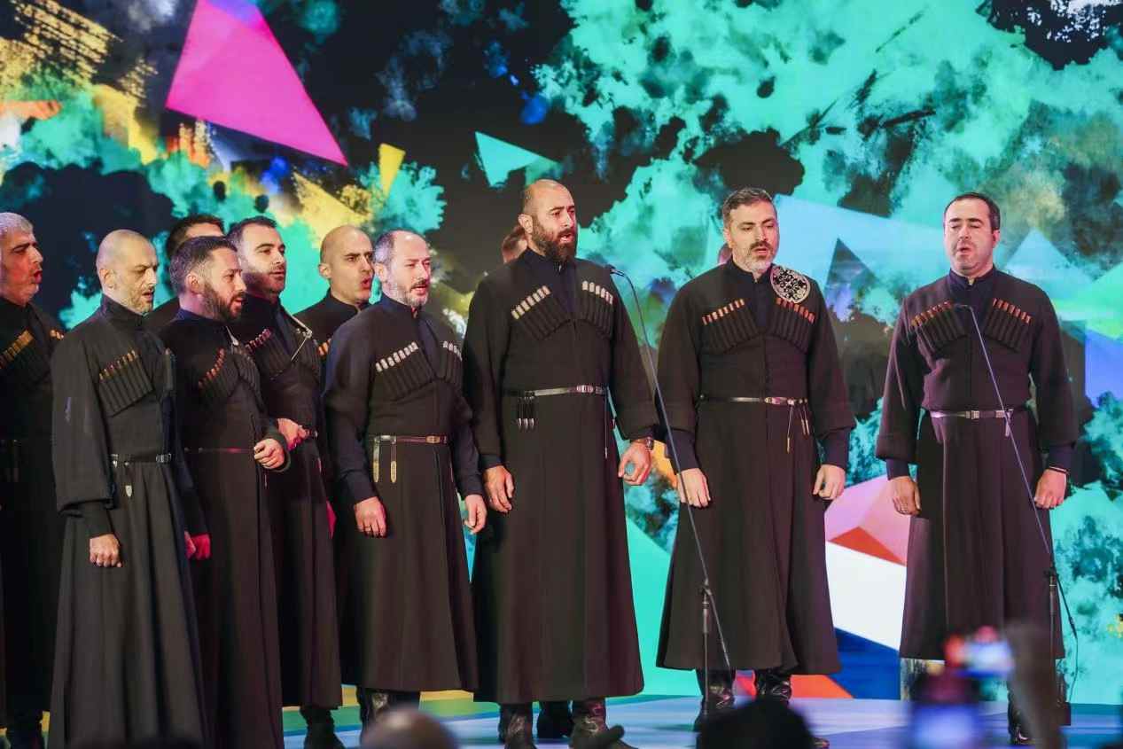 “太美妙了!两种完全不同的音乐风格,却能够如此和谐地交融在一起。”辽宁游客周红赞叹。来自中国贵州的侗族大歌与格鲁吉亚复调演唱同台,悠扬婉转的侗族多声部大歌与雄浑厚重的格鲁吉亚复调叠韵相和,两种源自不同文明的多声部演唱构成了一场跨越山海的“对话”。